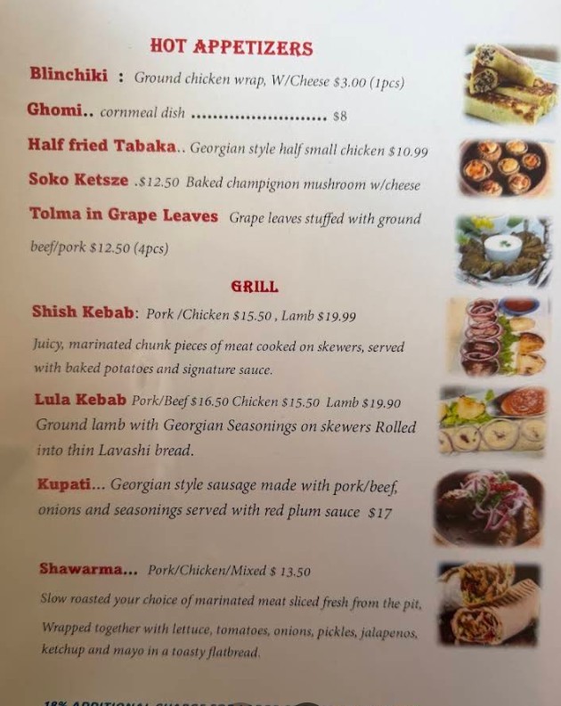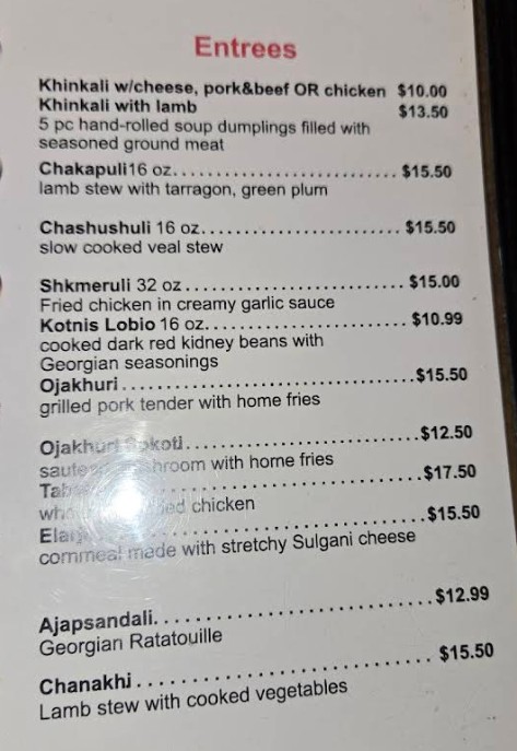 I first went to this Georgian restaurant on the third day of July in honor of Belarusian Independence Day. I drove from home to Fair Lawn that day, and that day was my first time going to Fair Lawn. Additionally, this was my first time trying Georgian cuisine. I loved the food I ate: the blinchiki, the Ajapsandali (the Georgian ratatouille), and the Penovani Lobiani, which was a puff pastry with red bean paste. Then, after I finished my meal, I ordered Georgian dumplings, which were delicious. I would love to dine in this eatery again one day.