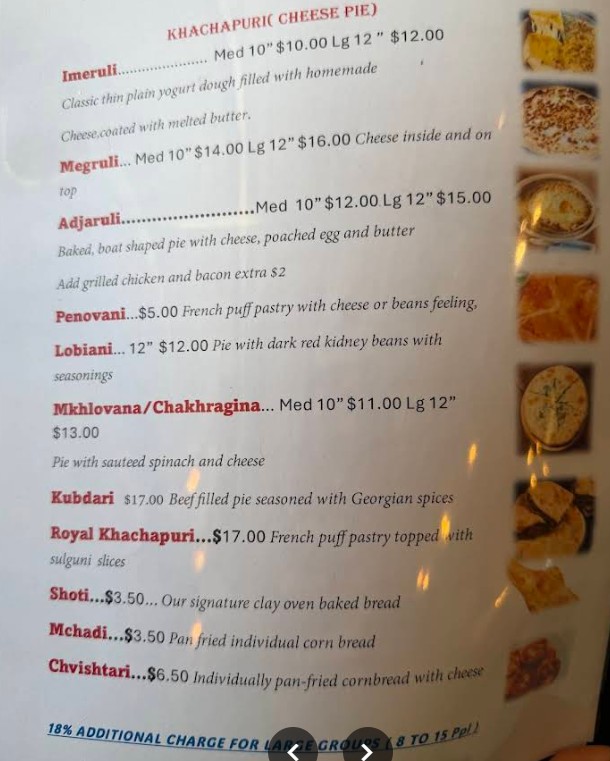 Nestled at the crossroads of Eastern Europe and Western Asia, the country of Georgia is a land rich in history, culture, and gastronomy, showcasing the bounty of the region's agricultural landscapes. Georgian cuisine has been attracting increased attention among chefs and food enthusiasts in the U.S. for a few years. Unfortunately, the number of truly authentic establishments is small, found mostly in larger cities that are home to sizable numbers of the Eastern European and Russian diaspora. Located on River Road in Fair Lawn, my partner, some of our Yelp friends, and I were lucky to have this hidden gem so close to home without going into Gotham and decided on lunch today. A reservation was easily made via Google Assistant. Labelled after shotis puri, the name of a traditional Georgian bread baked in a clay oven similar to a tandoor, we were greeted upon entering as first-timers at Shoti Bread House. With a cozy, casual, and welcoming vibe, we were seated immediately by the window. Their menu features a variety of traditional dishes like Khachapuri, Lobiani, and Kubdari. The star of the show is the Adjaruli, a boat-shaped bread filled with gooey cheese, butter, and a poached egg, grilled to perfection. We opted for family style and decided on Meguli (pizza), Adjaruli (boat-shaped cheese bread), Khinkali (chicken and lamb dumplings), Tabaka (roast chicken), Chicken Shish Kebab, and Chakapuli (lamb stew). Our meal started out with the Shoti. Every dish was fresh, full of authentic flavor, and made with care for authentic food. The portion was healthy, which didn’t leave room for dessert, and the prices were surprisingly affordable. Friendly staff made the experience even better, especially our server, Taylor. We look forward to going back soon!